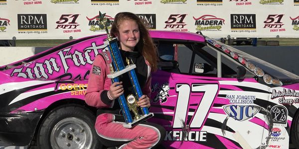 In 2023, Kercie will be competing in the LunkerDaddy Pro Late Model Series at Madera Speedway. This is a nine race series that showcases the talents of drivers 14 and up, from all over the West Coast. The typical car count is about 20-25 cars.